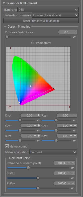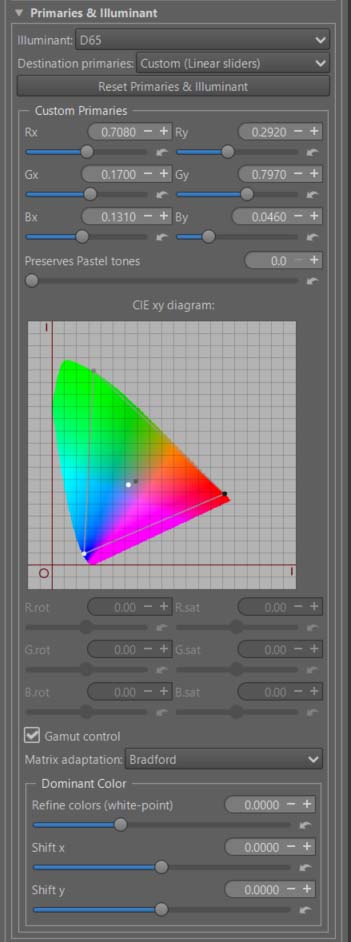 You can however choose to base the color rendering on one of the specific illuminants. In some cases this might produce more pleasing color. It can also be interesting for diagnostic purposes to see how large (or small) a difference there is in color rendering between the illuminants, but, as said, for general use this setting should be untouched.