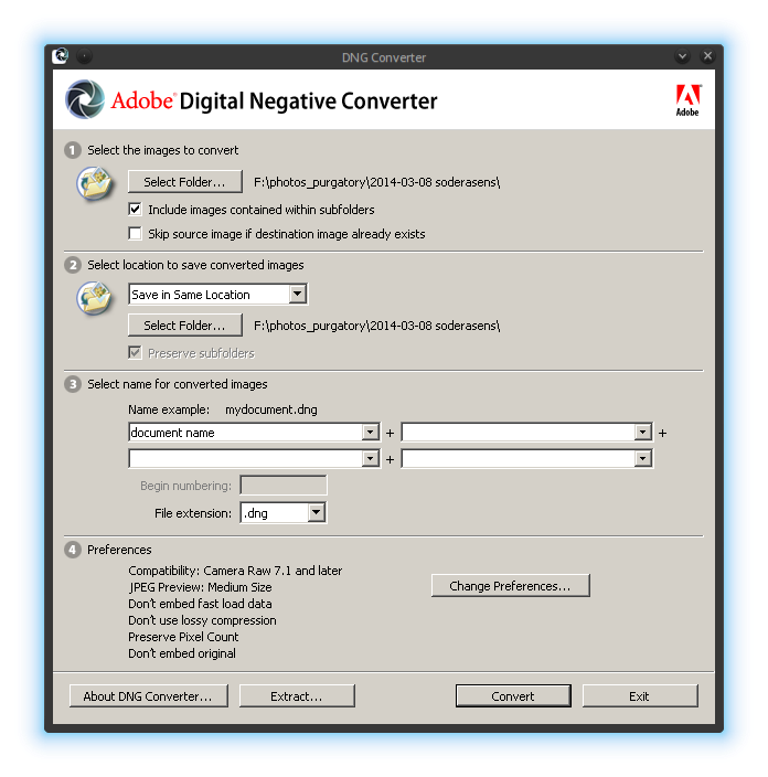 Installing Adobe DNG Converter in Linux