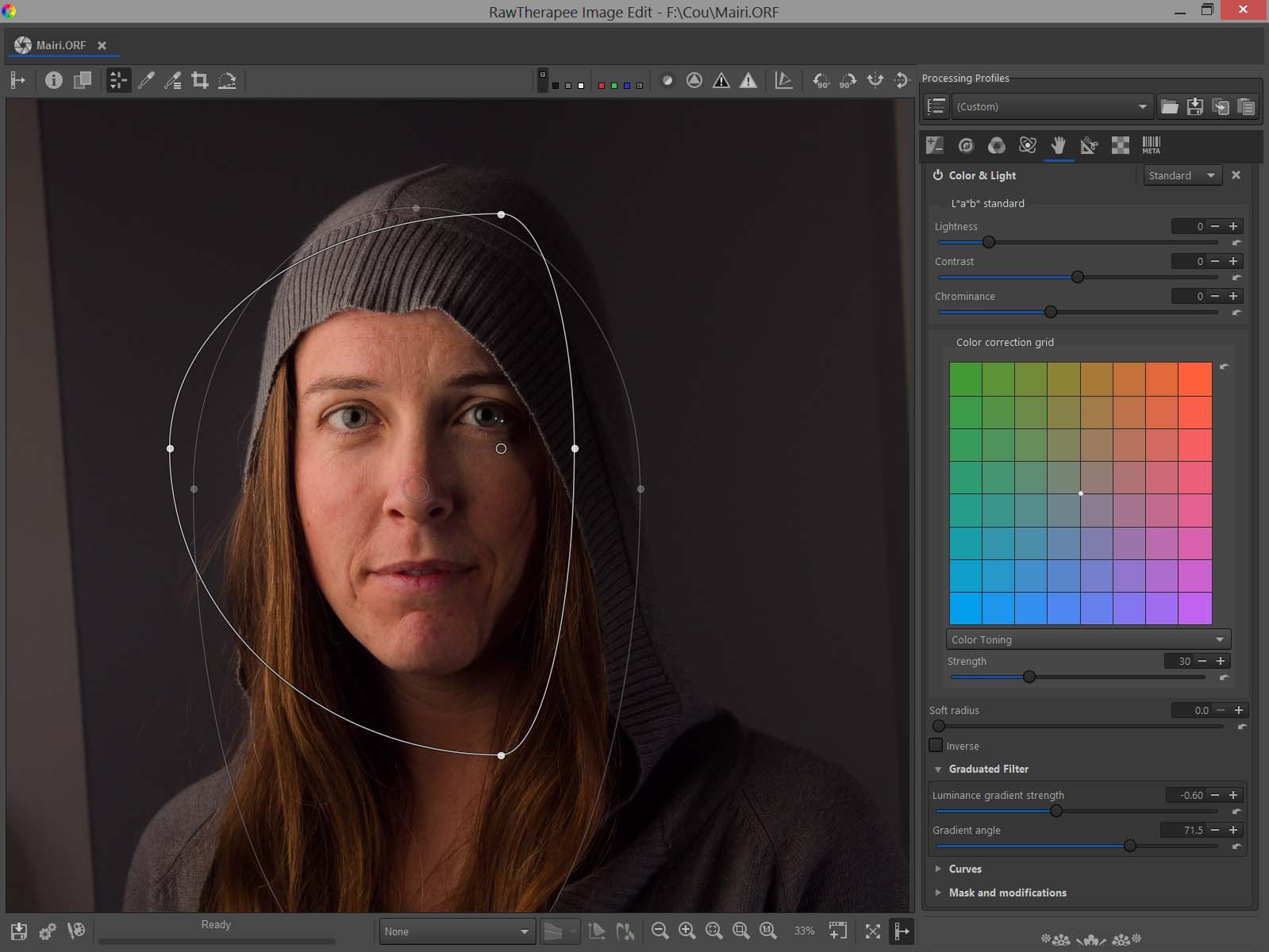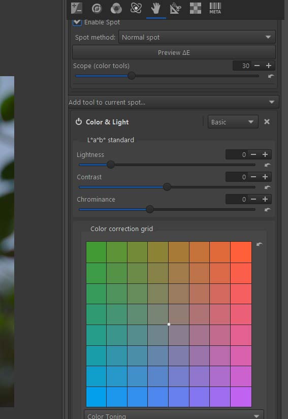 The Color & Light tool is extremely powerful and includes functions from both the “Color Toning > Color correction regions” module in the main-menu Color tab as well as the L*a*b* curves available in the Exposure tab