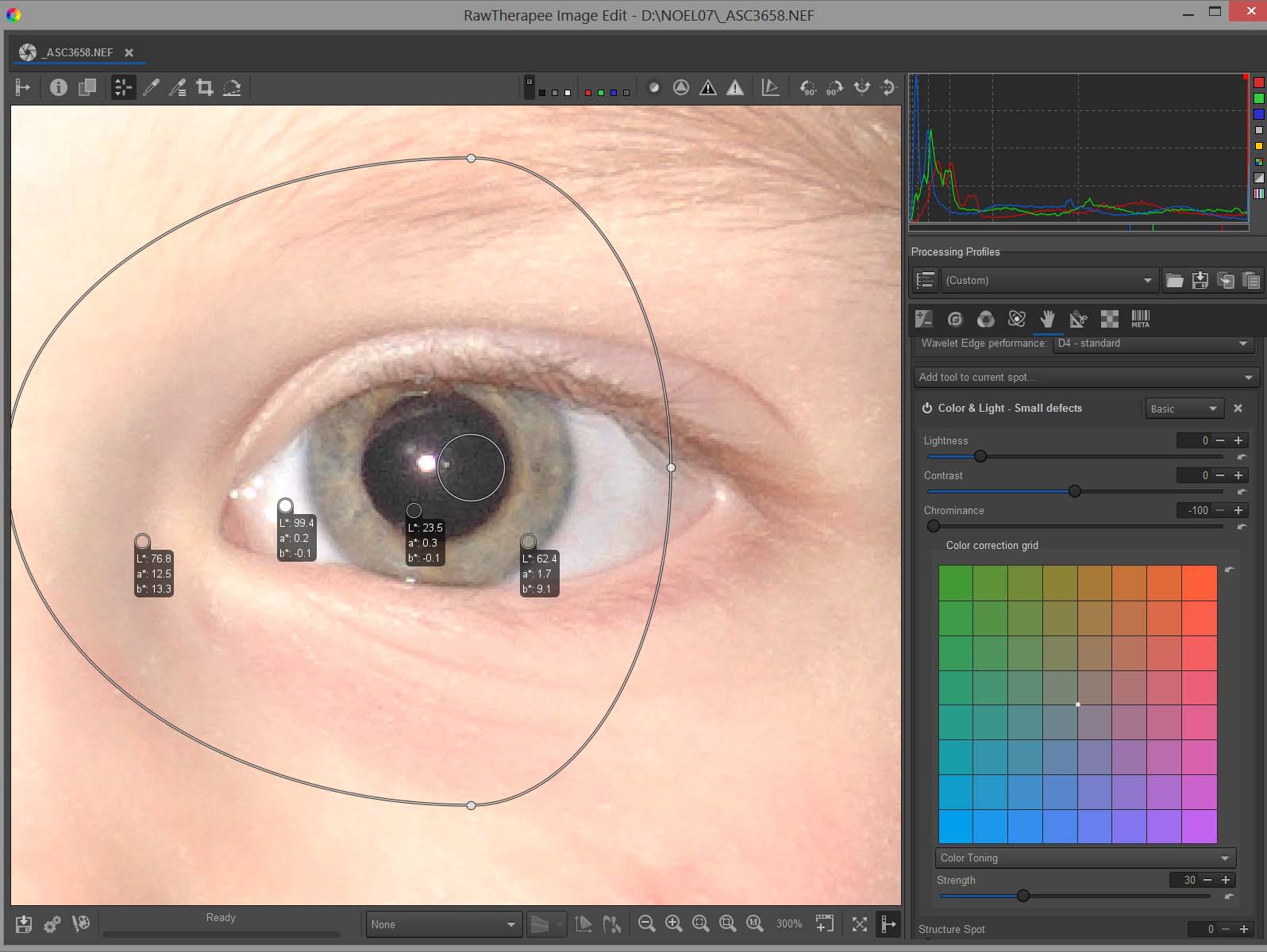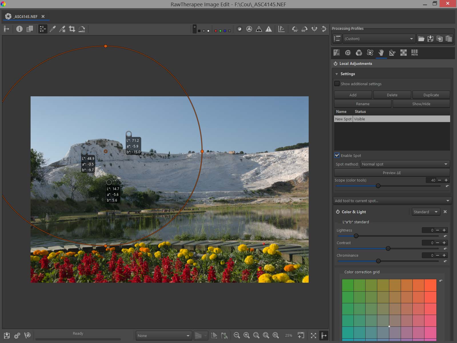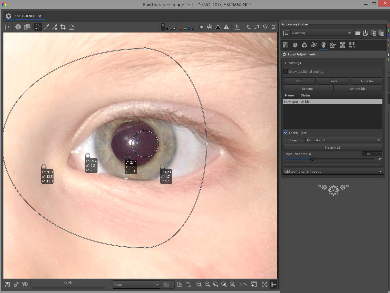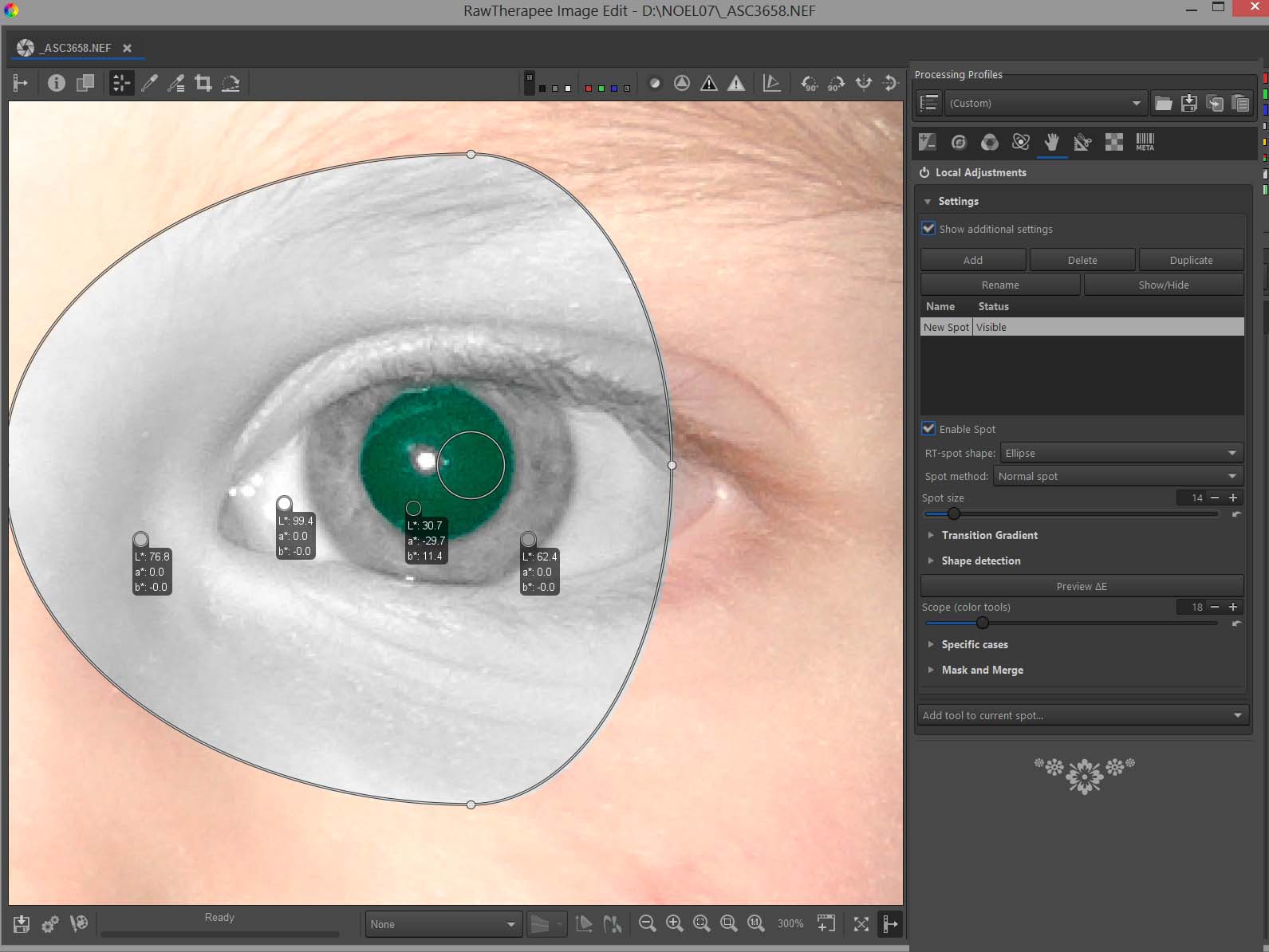 - Move the center of the RT-spot so that it is located on an area representative of what you want to change.