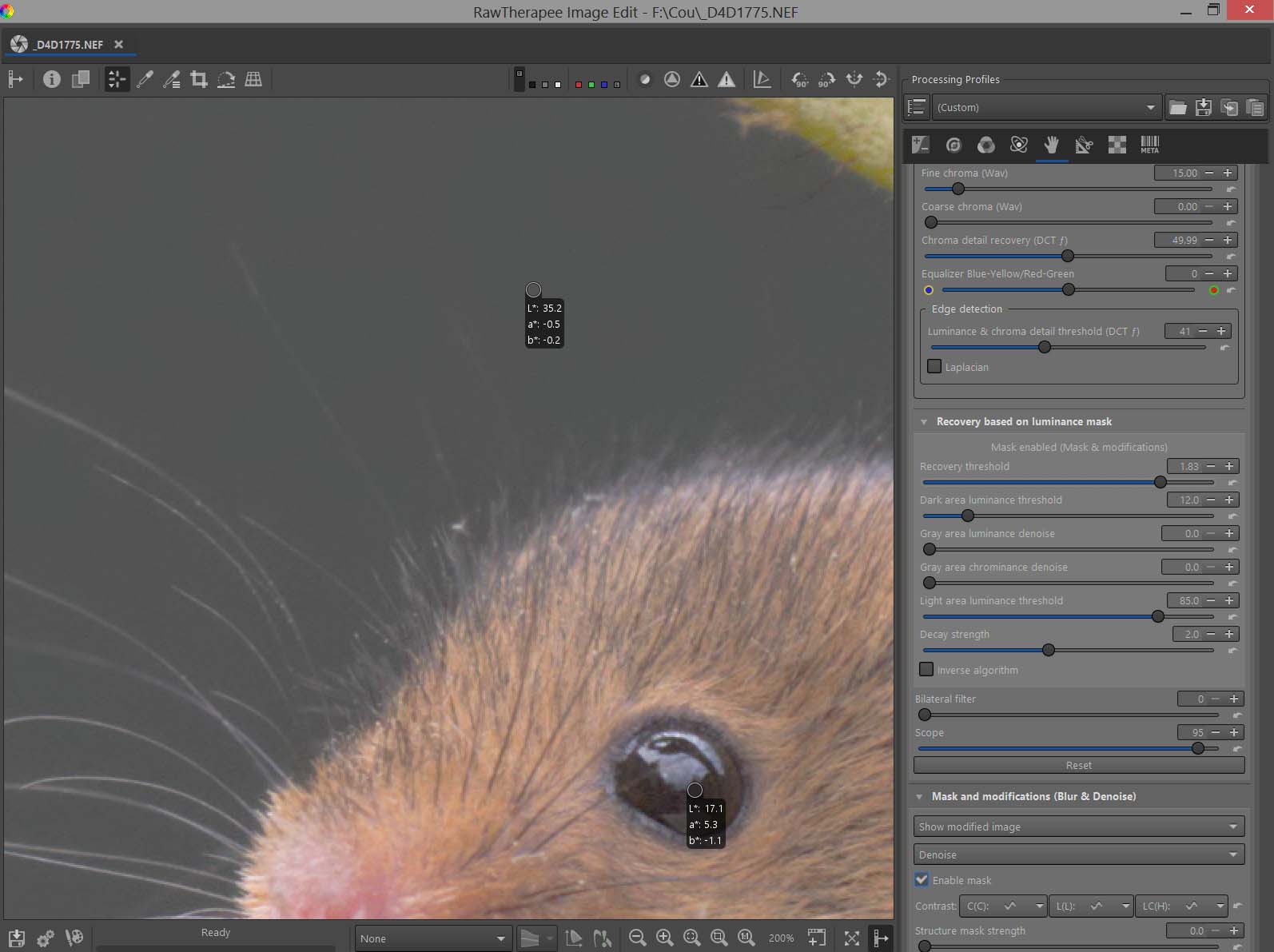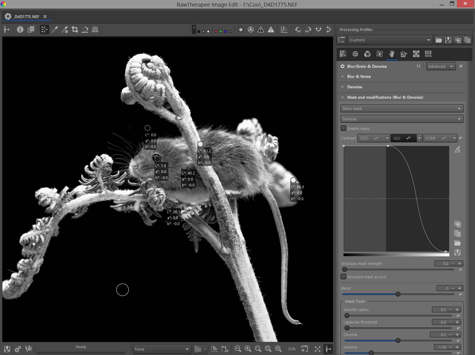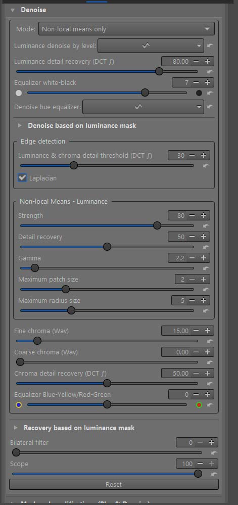 - Between the two, the image settings without denoise will be maintained unless you adjust the “Gray area luminance denoise” or “Gray area chrominance denoise” sliders.