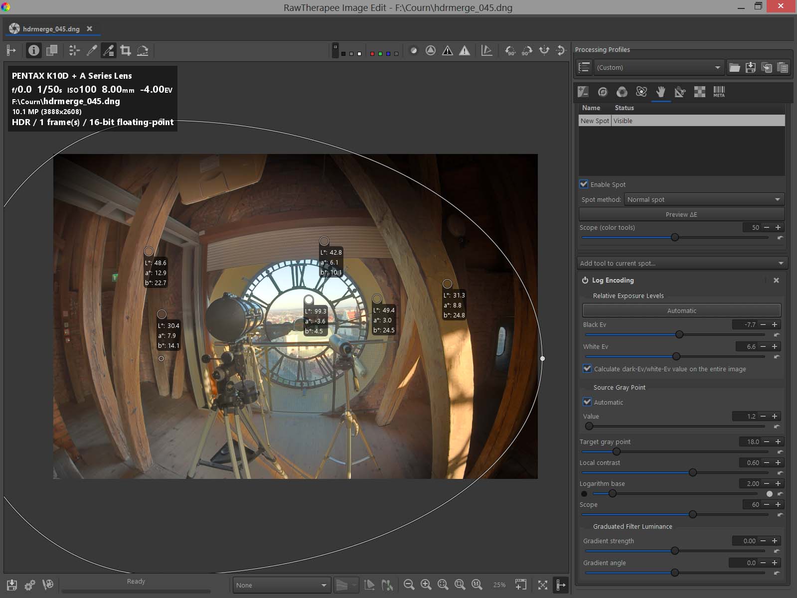 - Absolute luminance: corresponds to the luminance in candelas per m2 at the time of shooting, automatically calculated from the exif data.