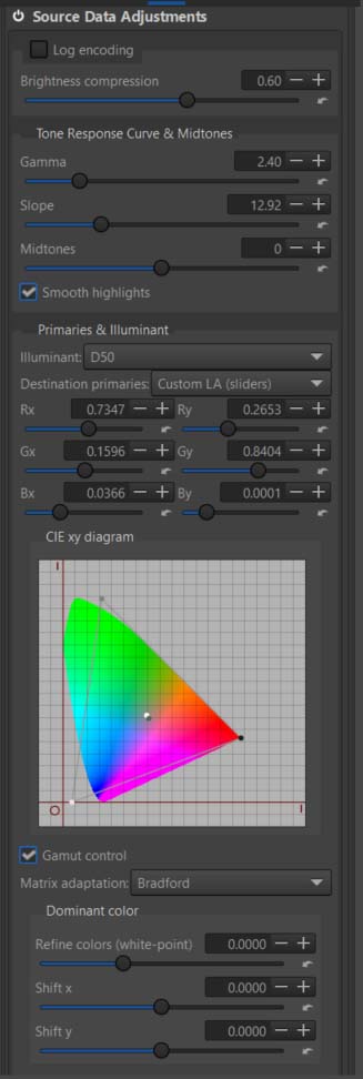 - No separate CAT02/16 adaptation settings (Scene and Viewing conditions).