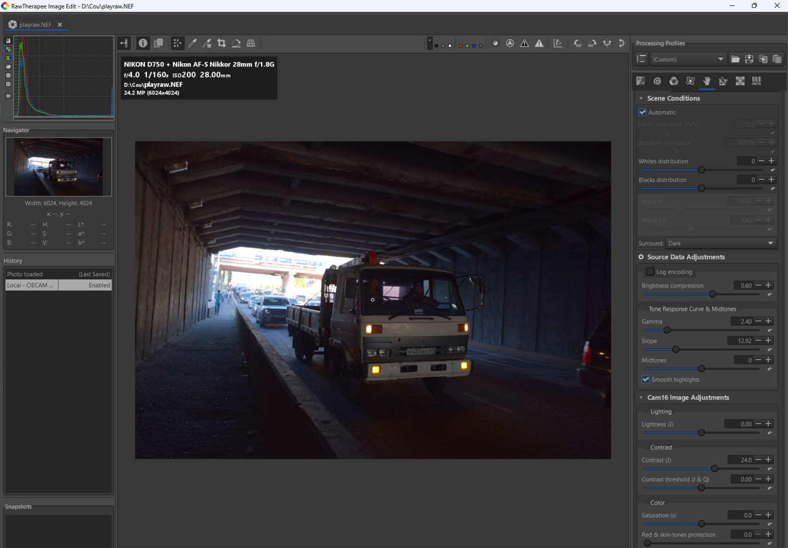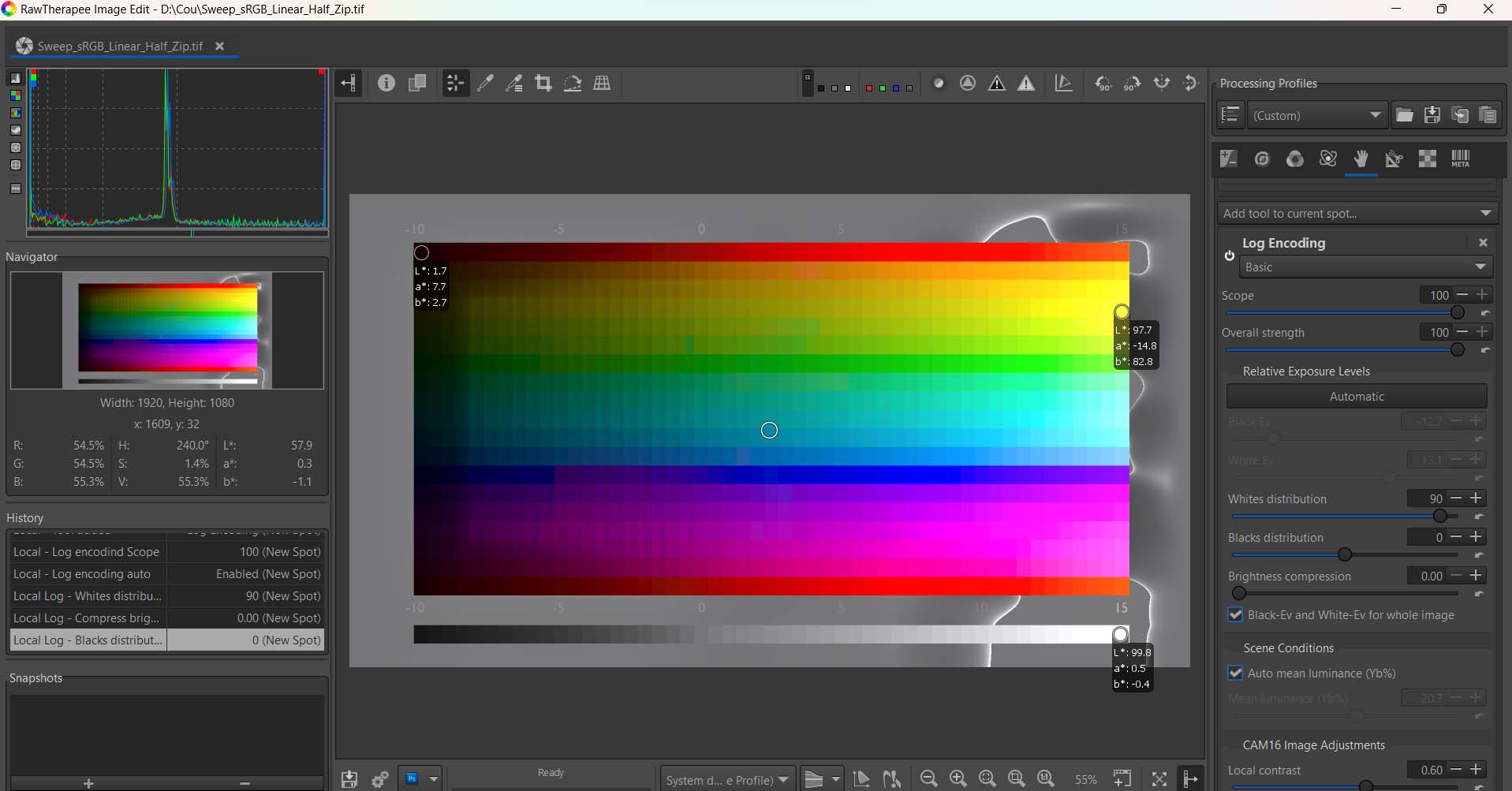 Example using Color Appearance and HDR functions: HDR-SDR First approach: Log encoding – Cam16 – JzCzHz – Sigmoid