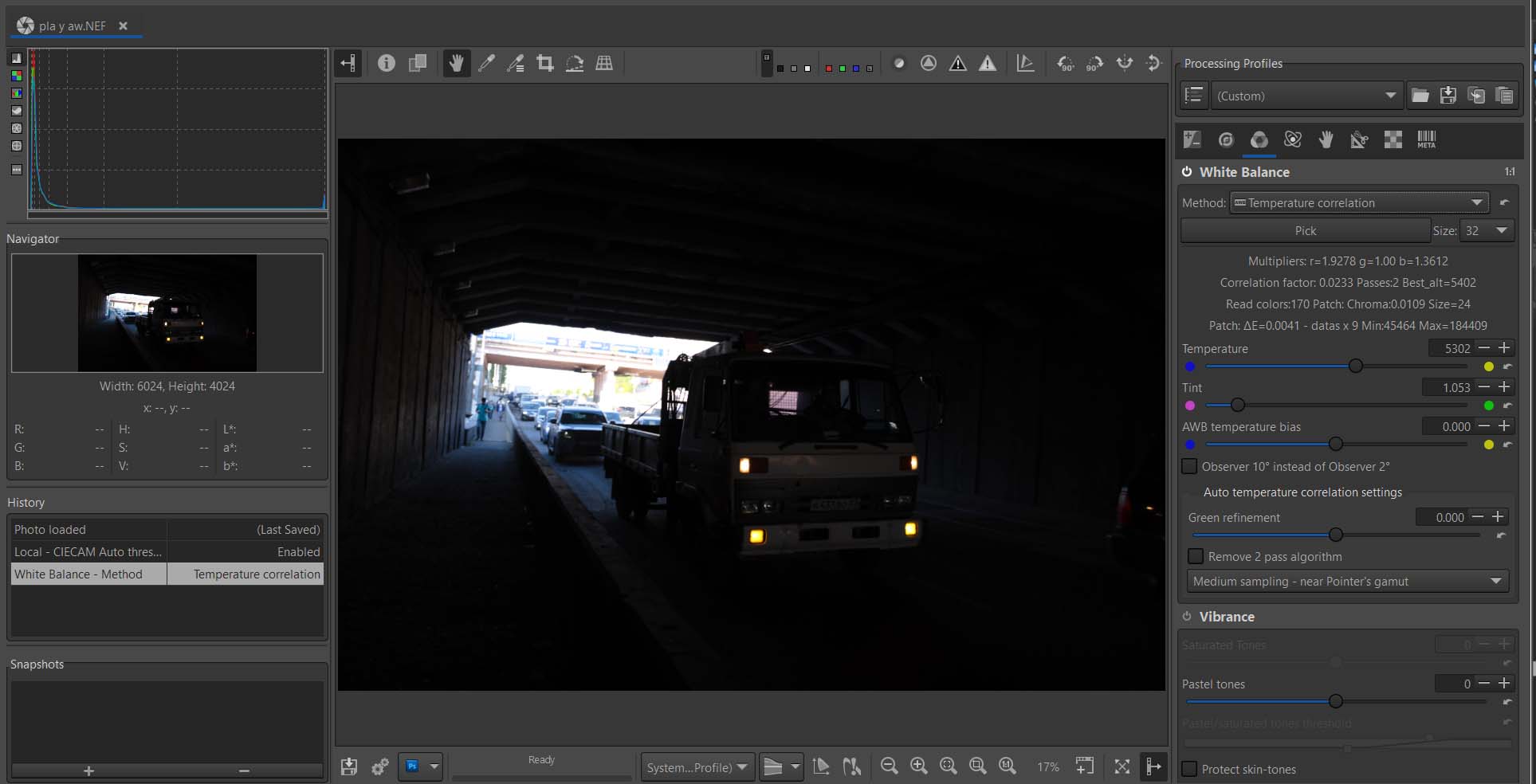 Adjust vibrance (essentially the same as the global adjustment). Carry out the equivalent of a white-balance adjustment using a CIECAM algorithm.