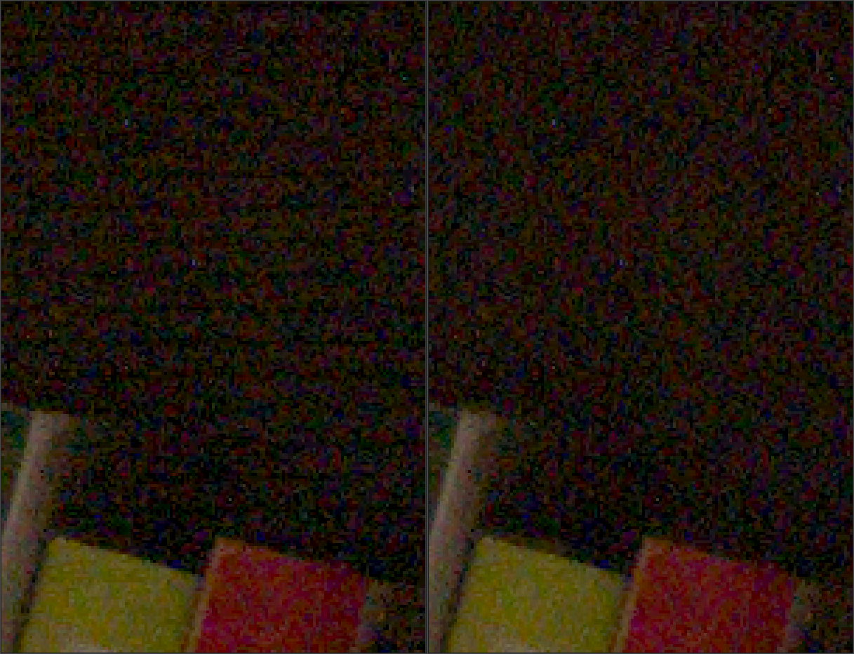 Green equiliberation can also be used to equalize green split caused by crosstalk. If you, for example via an adapter, use an analog ultra-wide angle lens with your digital camera the incoming light may arrive at such a low angle that some light passes through one color filter and gets registered in a neighboring pixel belonging to a different color channel - this is crosstalk. As one green channel has blue neighbors and the other red, the first will get crosstalk from blue and the other from red, hence they will separate which can cause mazing. Also red and blue channels will in such a situation suffer from crosstalk, but as they only receive from green there’s no separation in those channels. Mild crosstalk will not have any visible effect if green is equalized, while heavy crosstalk will show as desaturated dull colors (as the color channels have been mixed). Note that crosstalk generally doesn’t occur before heavy color cast, so in this case you will be using flatfield correction too.