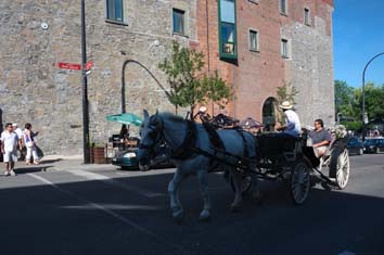 - 2010_MONTR_033.NEF: “The blue horse”. Shaded and sunlit areas, deep whites and blacks, isolated green tree, sky reduced to a small part of the image. In the centre the horse, its blue reflection and the carriage.