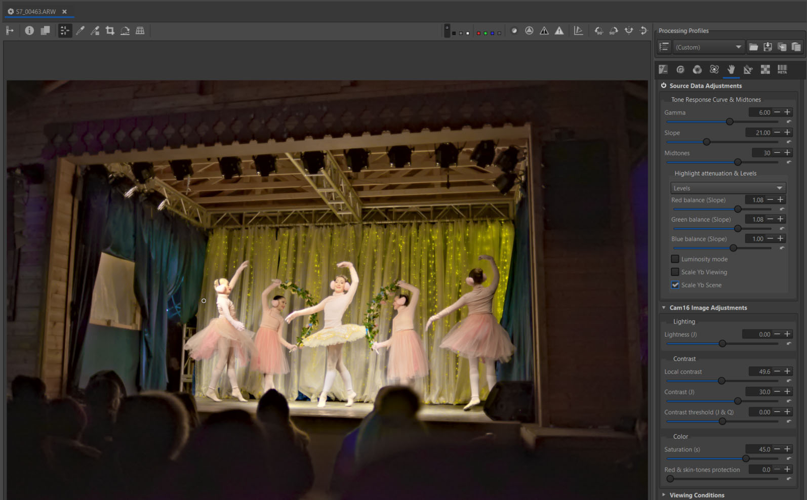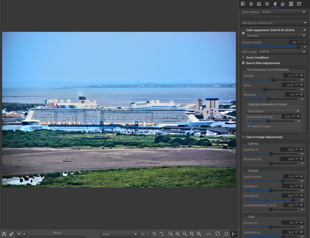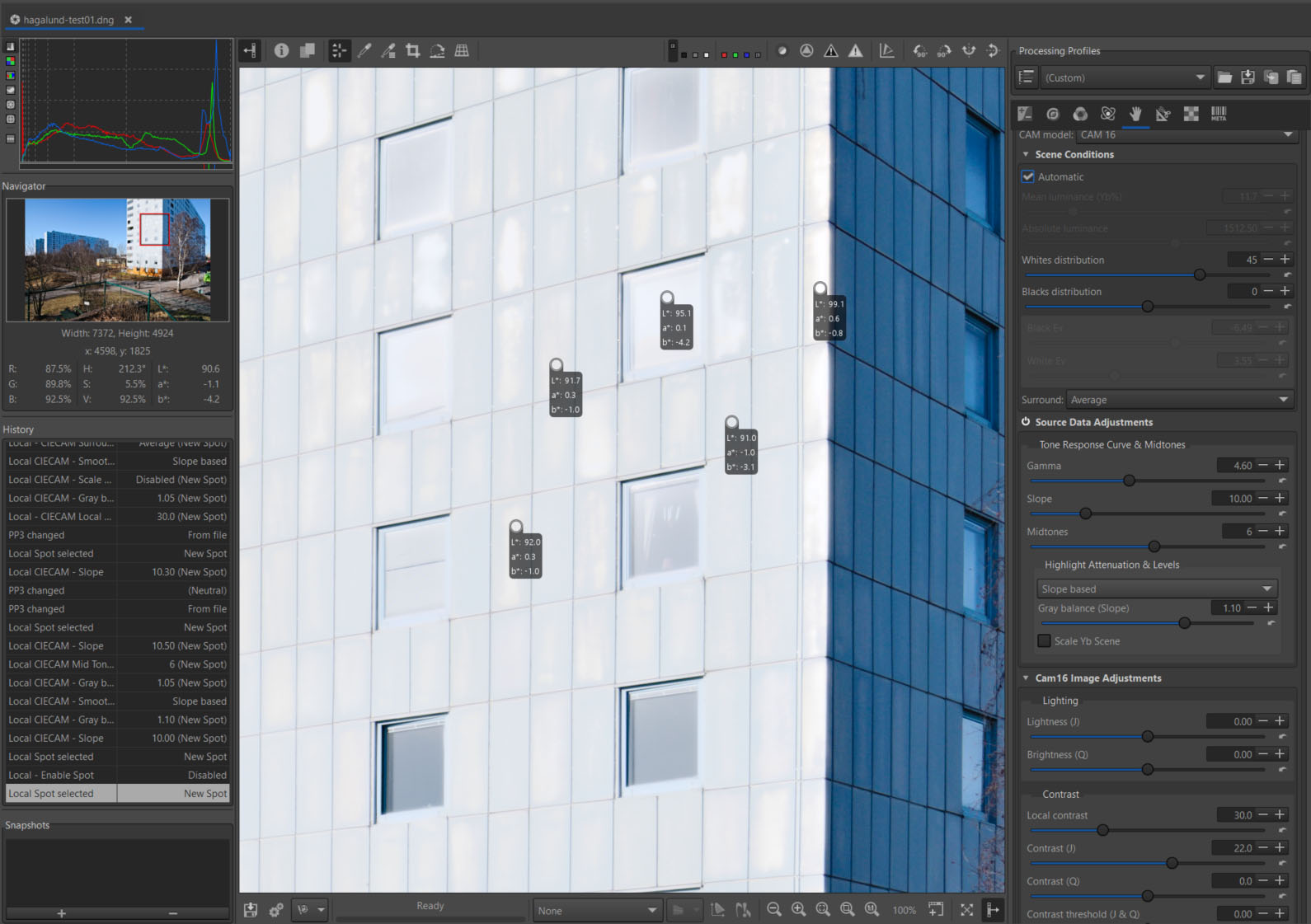 - In Cam16 Image Adjustments, you can set the usual image parameters (lightness, brightness, contrast, saturation, etc.) using a color appearance model (Ciecam).