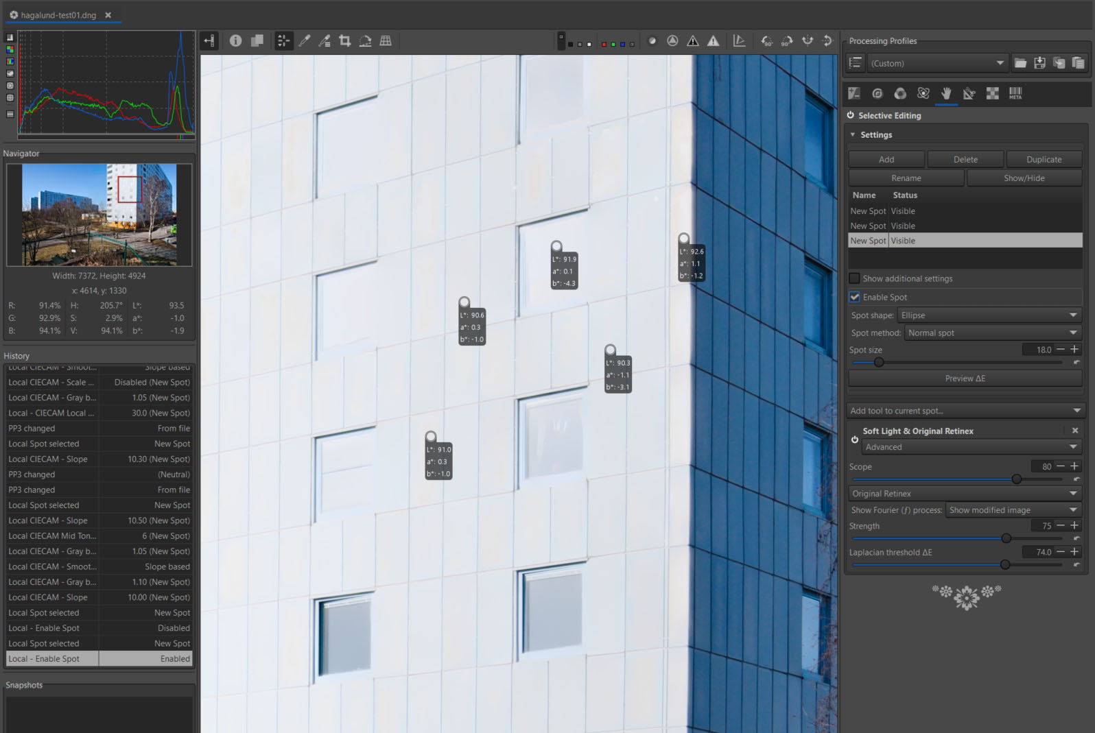 - Second Spot with Normal Spot method : Wavelets (Local Contrast & Wavelets)