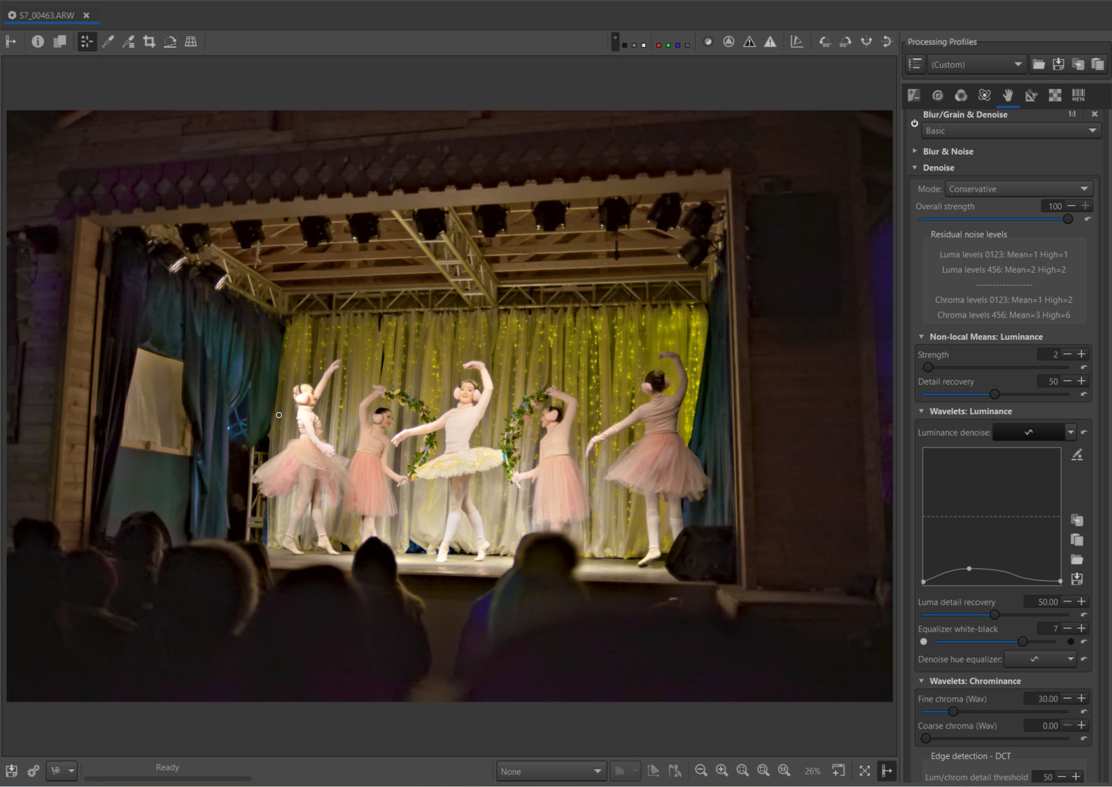 - Treatment Summary:Exposure, Tone Equalizer, Noise Reduction, Color Appearance & Lighting,