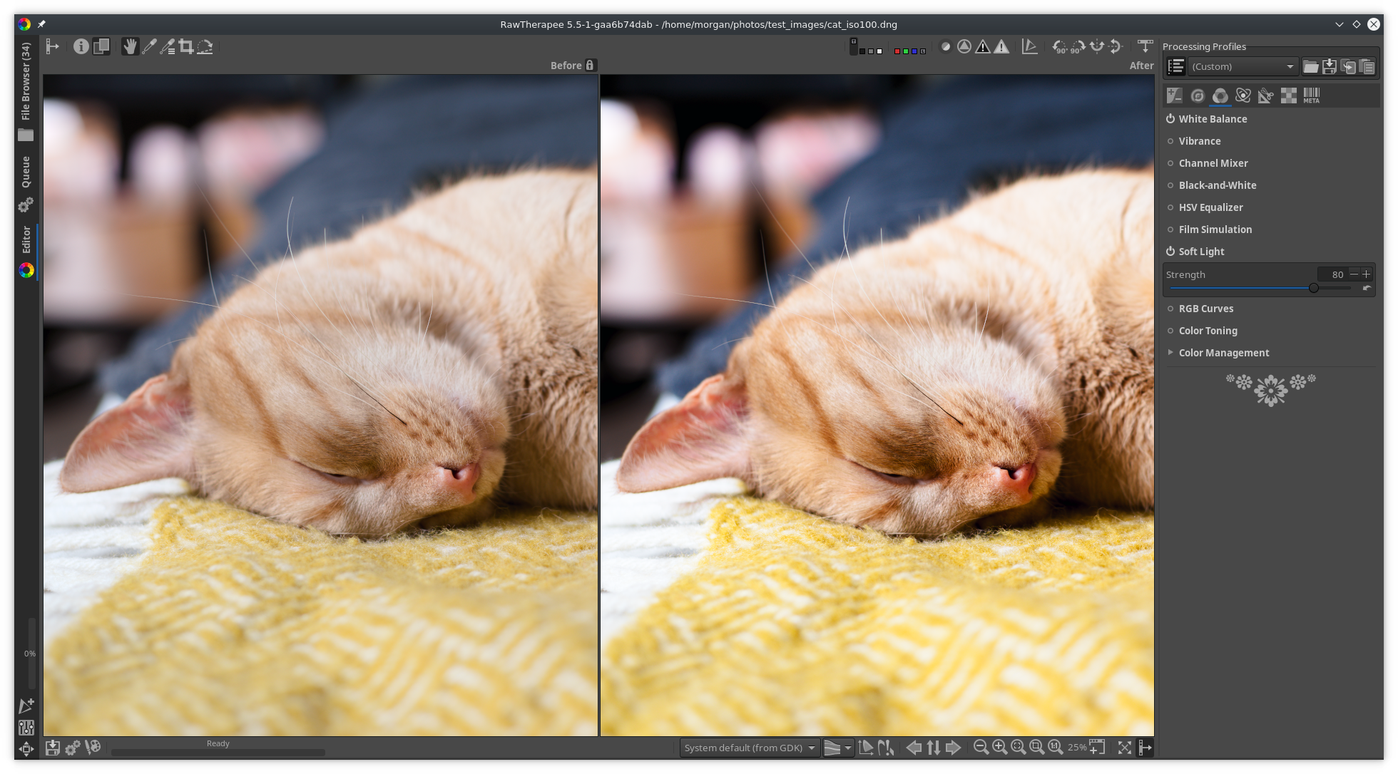 This tool emulates the effect of blending an image with a copy of itself in “soft-light” mode in GIMP. The resulting image has a little extra contrast and saturation, which is usually visually pleasing.