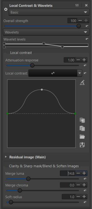 - In Selective Editing, there is the Local Contrast & Wavelets tool, which in Basic mode allows you to adjust the local contrast (by choosing the appropriate range of decomposition levels) along with a Clarity function.